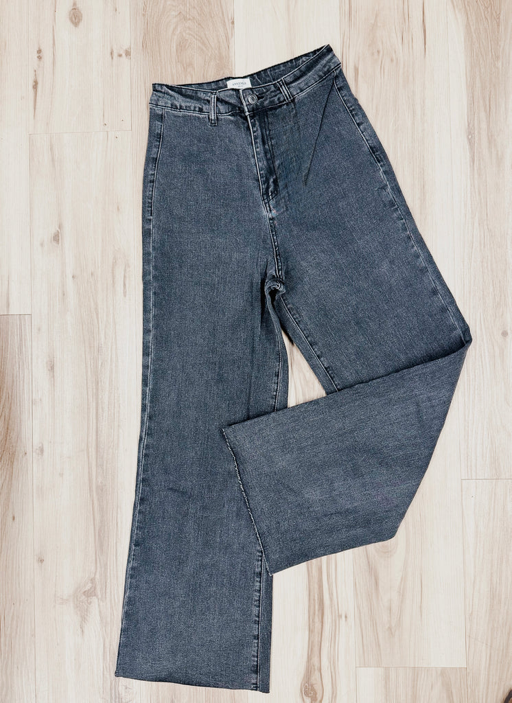 STRETCH HIGH RISE WIDE LEG CROPPED DENIM JEAN - STRETCH DENIM - ONLY BACK POCKET - NO FRONT POCKET - CLEAN CUT HEMLINE - HIGH RISE - WIDE LEG - CROPPED LENGTH