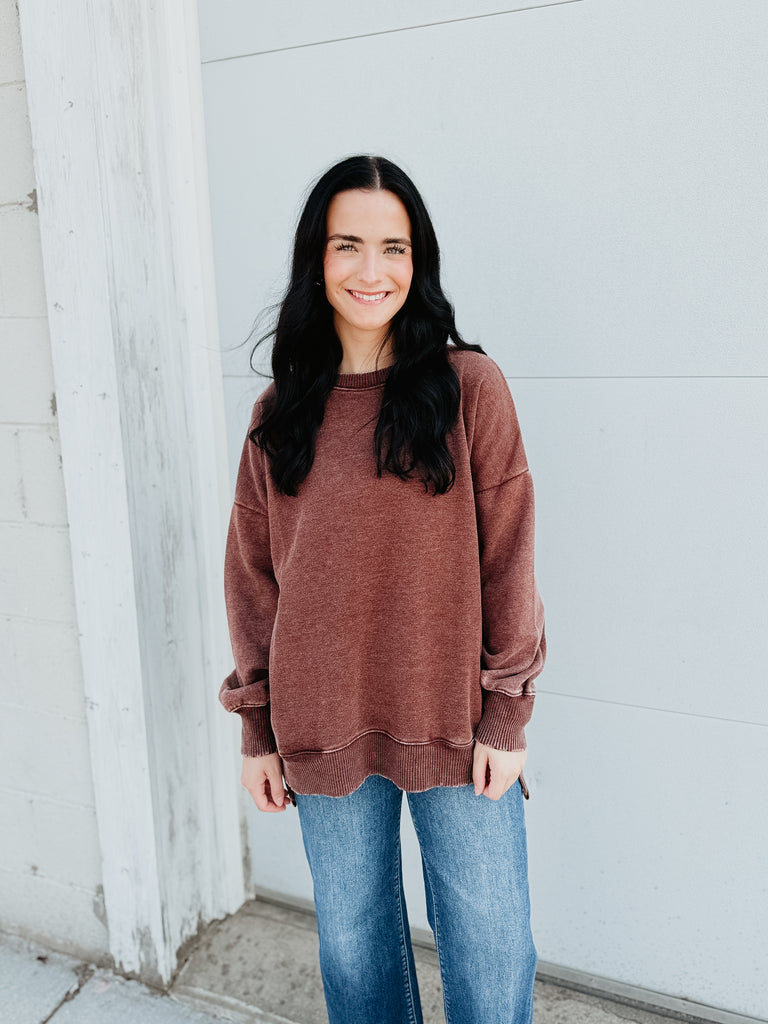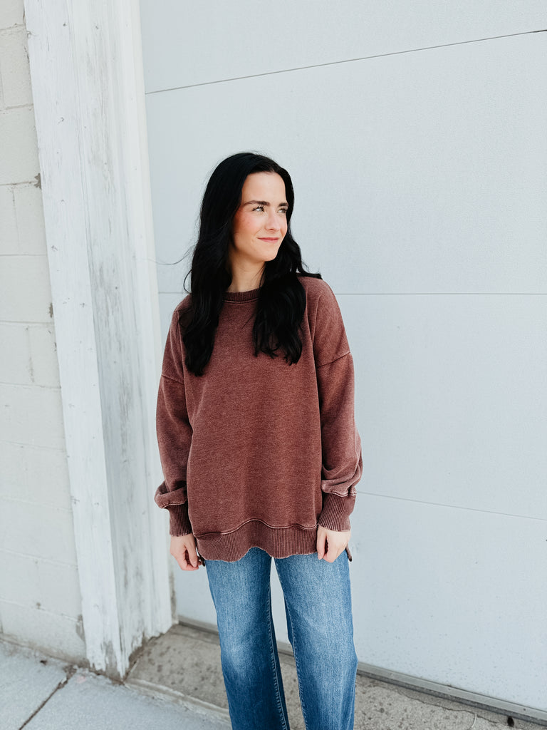Kehlan Washed Pullover (mahogany)
