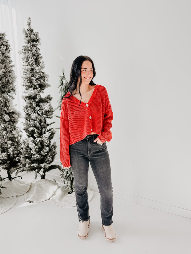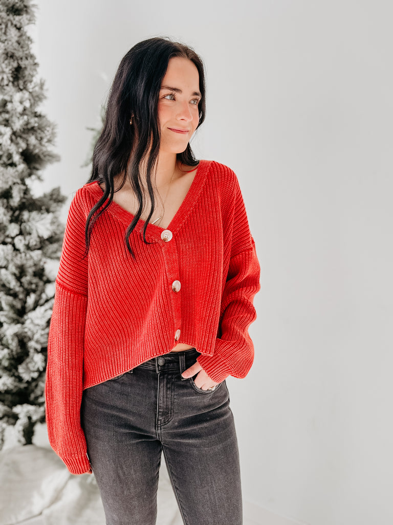 Holiday Cheer Knit Button Down Sweater